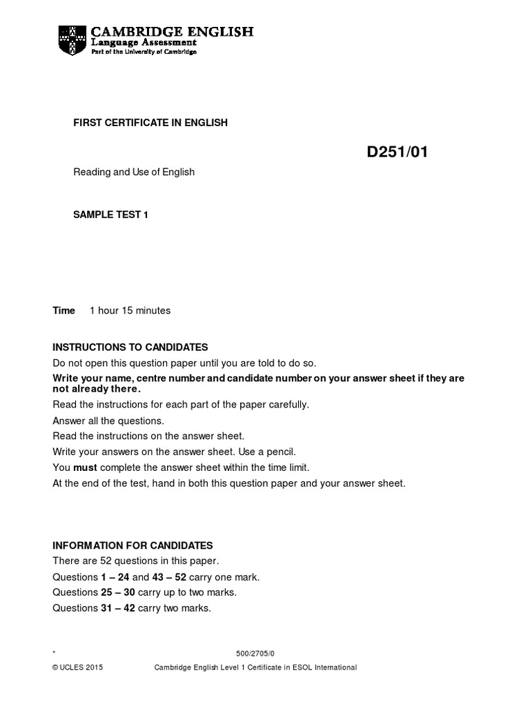 Cambridge-english-first-2015-sample-paper-1-listening-audio-file v2mp3 cambridge-english-first-2015-sample-paper-1-listening-audio-file v2mp3 attachment 785904 0. INSTRUCTIONS TO CANDIDATES Do not open this question paper until you are told to do so. D25101 Reading and Use of English.