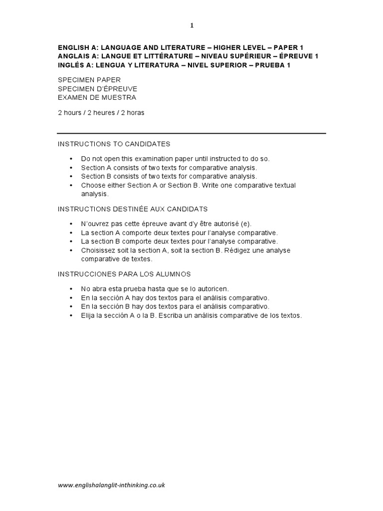 While the extracts used for the Paper 1 is a past exam for English A2 Paper 1 for A2 and A1 Language and Literature the same. IB English HL Paper 1 CTA exampletemplatesample Hey guys. Because we cant reprint the actual examination IB or others own the.