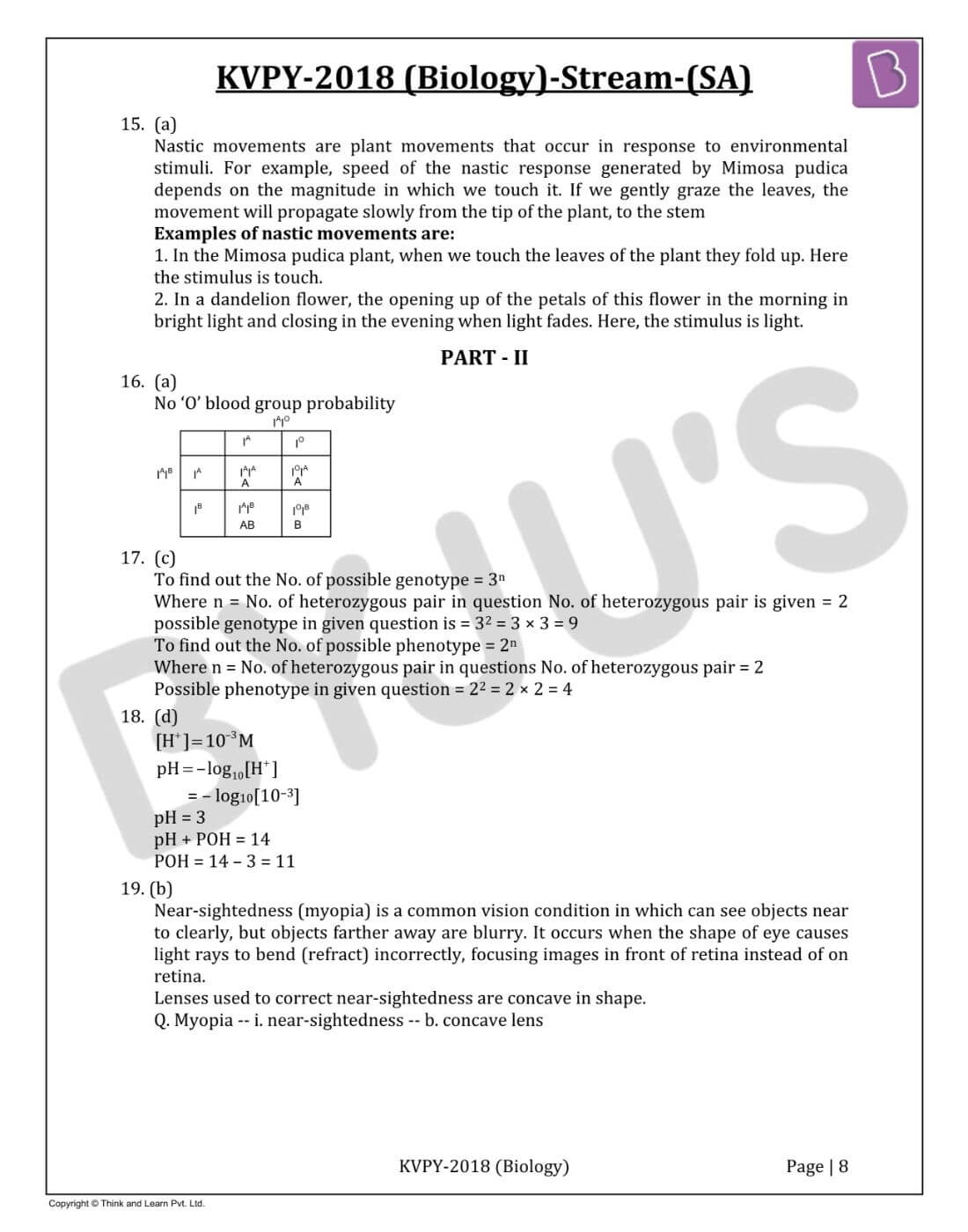 Kvpy Sa 2018 Biology Solutions Paper Download Pdf