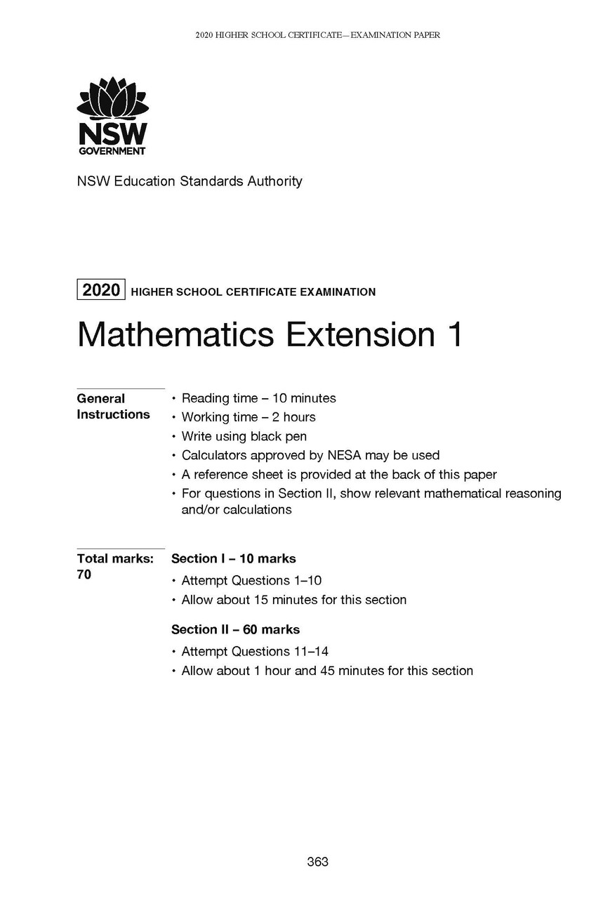 HSC Standards Package for Mathematics Extension 1 In 2001 the Board of Studies introduced as part of the Higher School Certificate major changes to. Get all your HSC past papers here for Standard Advanced Extension 1 and Extension 2 Mathematics. NESA 2019 HSC Mathematics Extension 1 Marking Guidelines.