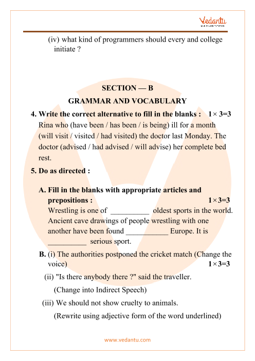 Sample English Question Paper For Class 8 Wbbse