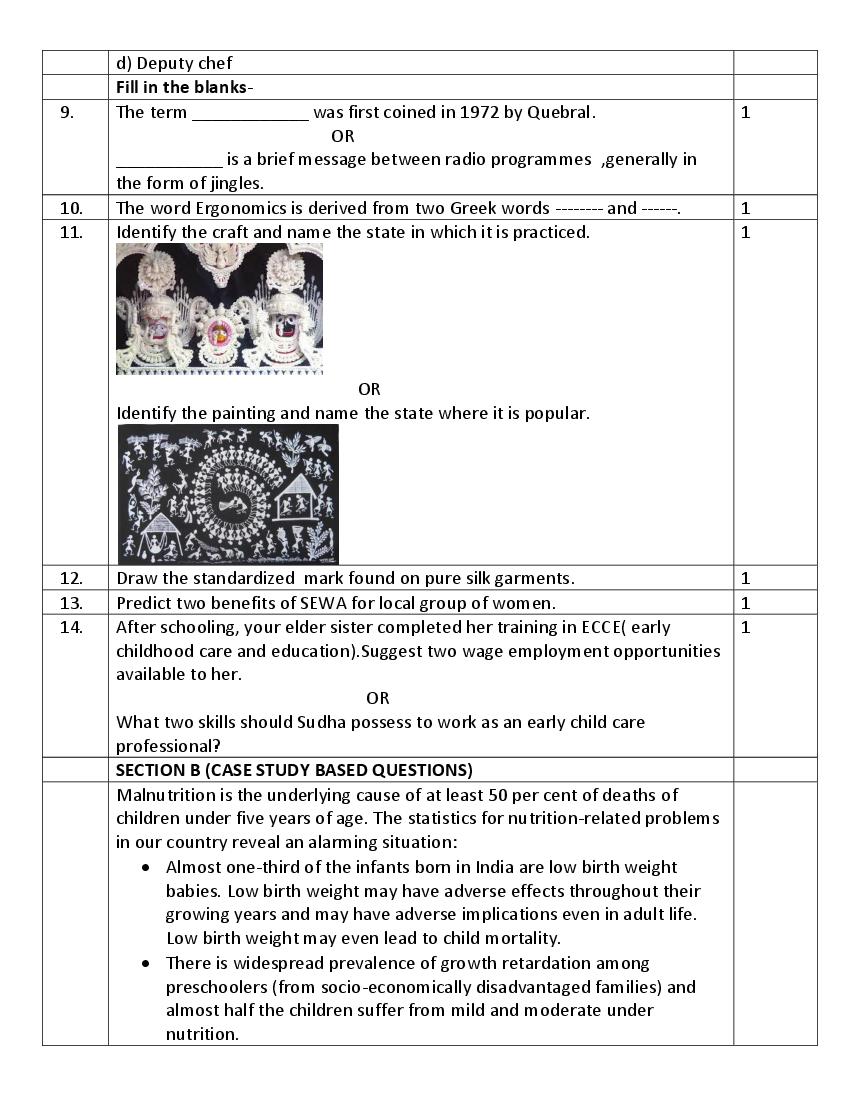 CBSE Class 12 Home Science Sample Paper 2020 Solved 1. This sample paper has been released by the board with changed pattern according to. CBSE sample paper for class 10 Home Science subject is provided here for board exam 2020.