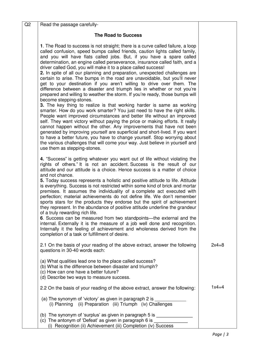 Cbse Sample Question Papers For Class 10 English Language Literature Mock Paper 3